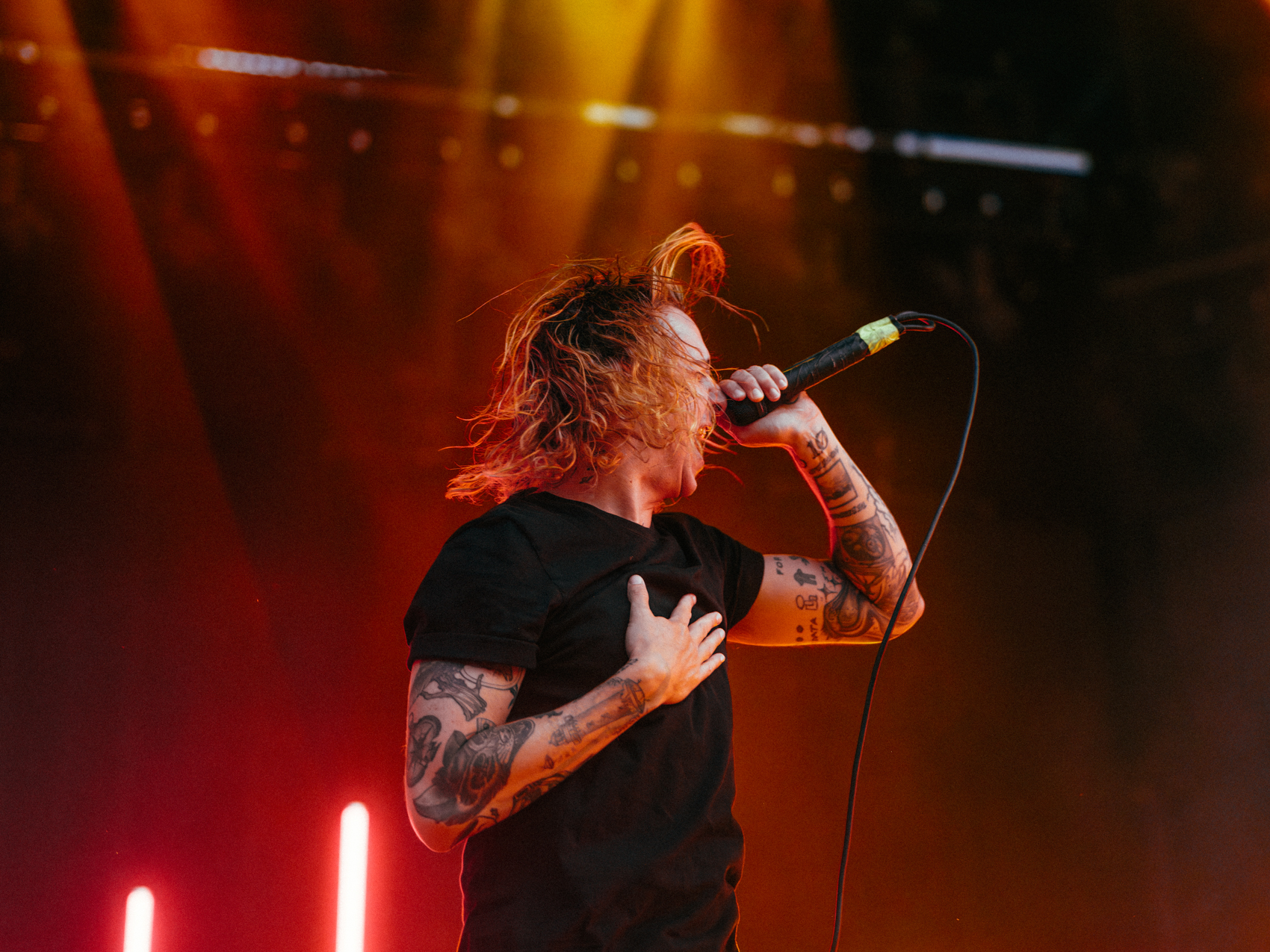 I photographed the Rise of the Roach Tour at Jones Beach, covering the full lineup — Papa Roach, Rise Against, and Underoath. Each band brought a distinct visual identity: Papa Roach with their explosive pyro and larger-than-life staging, Rise Against with moody, high-contrast lighting, and Underoath with raw energy framed against the fading sunset.